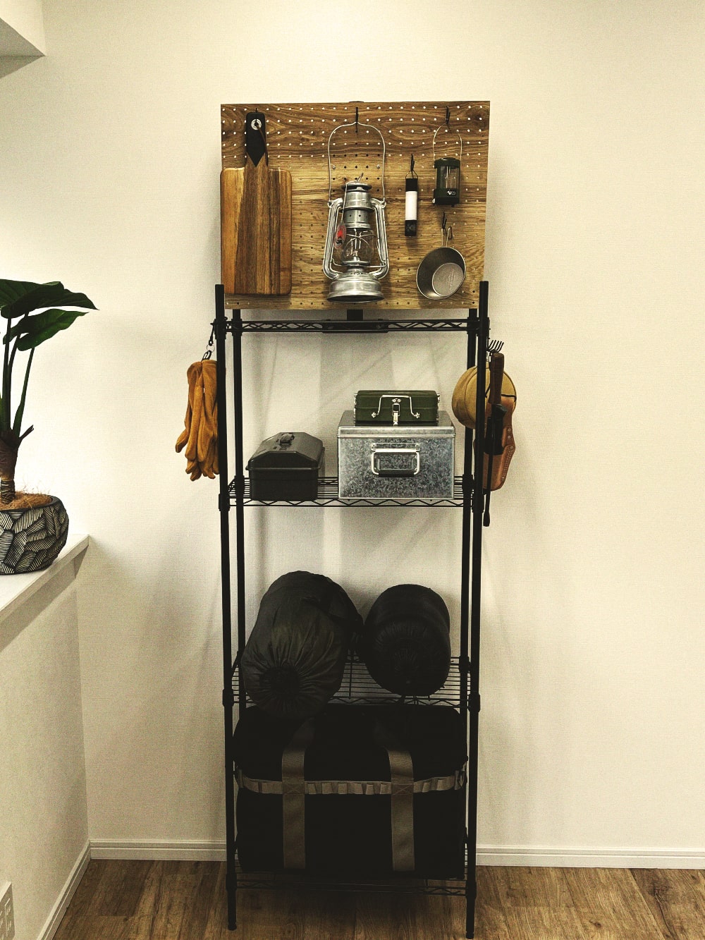 お気に入りのキャンプ用品を使わない時もインテリアとしてディスプレイ可能。