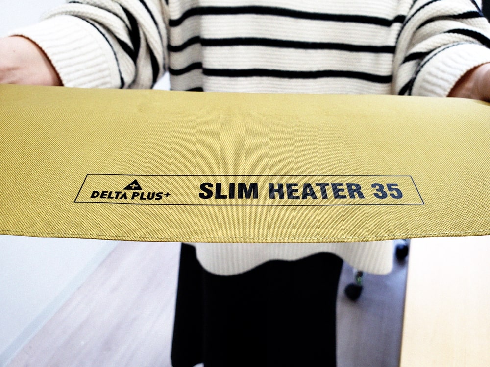 製品の膨らみも感じにくいのもスリムヒーターの特徴のひとつです。